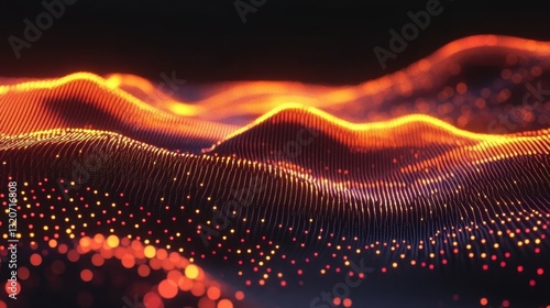 Abstract futuristic data visualization with glowing dots and dynamic waveforms
