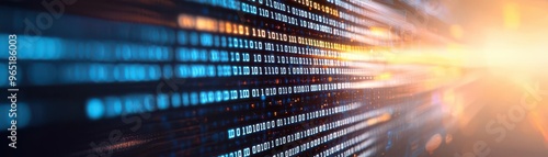 Abstract futuristic digital code display with light reflections on screen Ideal for technology, data, and computer science concepts