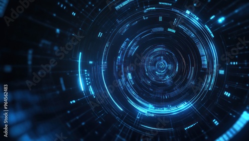 Abstract Futuristic Digital Interface with Glowing Blue Circles