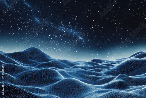 Abstract Futuristic Digital Landscape with Starry Sky