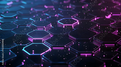 Abstract Futuristic Hexagonal Pattern With Neon Lights