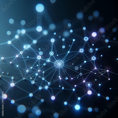 Abstract futuristic high tech 3D neutral network visualization glowing connection nodes and line data flow