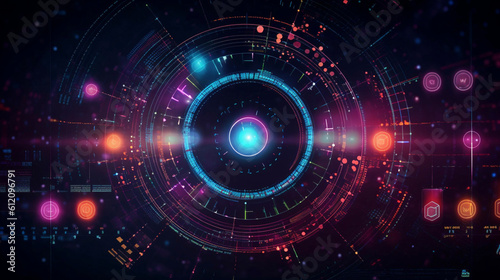 Abstract Futuristic infographic with Visual data complexity, represent Big data concept, node base programming. Cyberspace, technology, internet