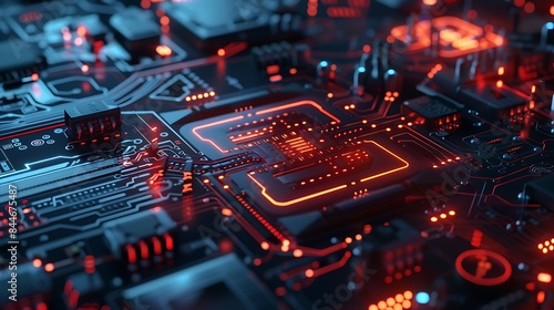 Abstract Futuristic Motherboard Close-Up: Technology and Innovation Concept in High-Tech Industry