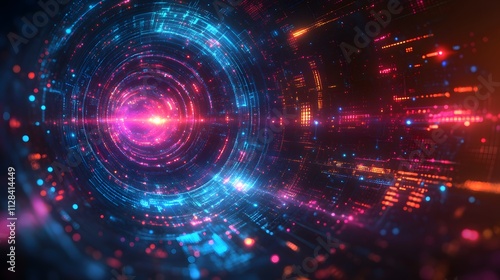 Abstract futuristic technology background design with blue and purple circular shapes design, vector illustration design. Digital data, high-tech concept. Flat design,