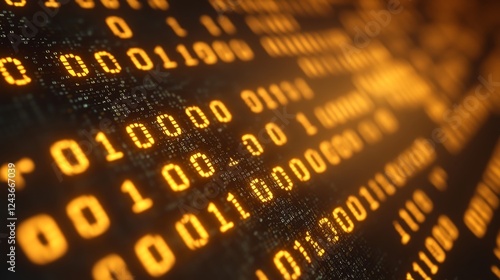 Abstract Futuristic Technology Background, Glowing Binary Code Data Stream, Digital Information Flow