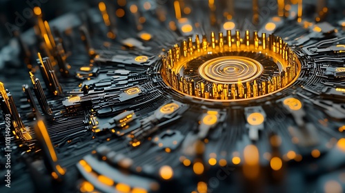 Abstract Futuristic Technology Background with Glowing Orange Lights