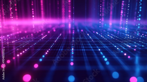 Abstract Futuristic Technology Background with Neon Lights and Grid Pattern.