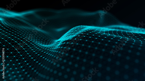 Abstract futuristic wave background. Wave of particles. Wave with connecting dots and lines. 3d rendering.