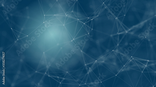 Abstract futuristic with connection lines on blue background. Plexus structure. Concept of Science, Business, Communication, Medical, Technology, Network, Cyber, Sci-fi. Illustration. 3D rendering