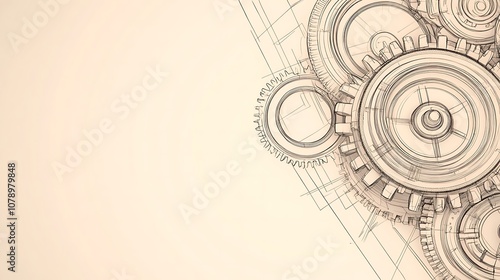 Abstract gear design on a beige background.