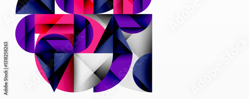 Abstract geometric artwork with overlapping circles and gradients, circle square triangle shapes background featuring sharp angular cuts, smooth shading, and structured layered composition