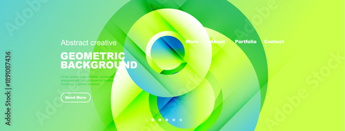 Abstract geometric background design. Vibrant green, yellow hues create modern website header. Text elements present, inviting exploration.