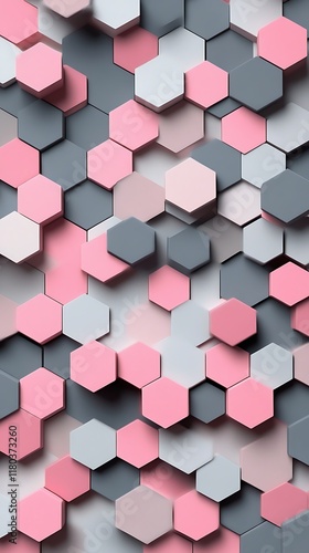 Abstract Geometric Background Featuring Hexagonal Patterns in Soft Pastel Pink, Gray, and White Tones