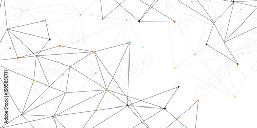 Abstract geometric background with connecting dots and lines with low poly triangle shapes. Polygonal Mesh Background Vector design digital technology concept Global network connection data structure.