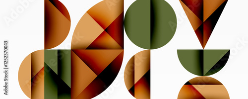 Abstract geometric background with layered gradient shapes forming dynamic patterns. Overlapping semi circles and triangles create depth and contrast