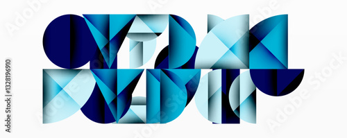 Abstract geometric background with layered gradient shapes forming dynamic patterns. Overlapping semi circles and triangles create depth and contrast