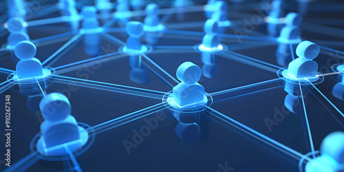 abstract geometric background with many people icons. blue background visualizing social networks or the Internet web. 3d rendering