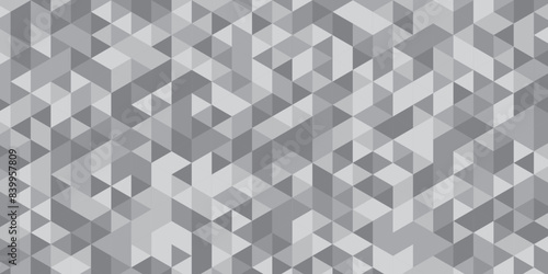 Abstract geometric black and gray background seamless mosaic and low polygon triangle texture wallpaper. Triangle shape retro wall grid pattern geometric ornament tile vector square element texture.