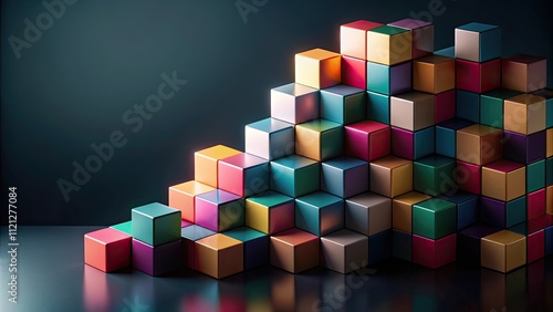 Abstract geometric blocks on dark background, render, abstract, geometric, blocks, dark, background,render, shapes, design