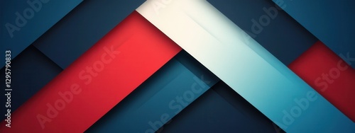Abstract geometric composition featuring layered shapes in red, blue, and white tones, creating a modern and dynamic visual effect
