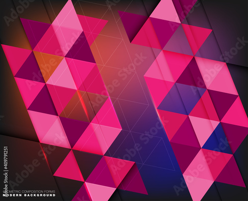 Abstract geometric composition forms modern background with decorative triangles and patterns backdrop vector illustration set