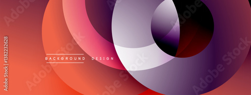 Abstract geometric composition. Overlapping circles create dynamic visual effect. Gradient colors blend smoothly, forming modern background.
