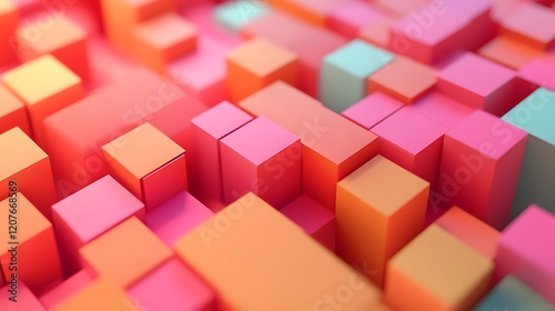 Abstract Geometric Composition with Floating Cube Layers and Network Design in 3D