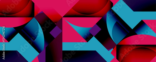 Abstract geometric composition with interlocking circular and angular shapes, featuring smooth gradients and sharp contrasts on a white background