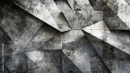 Abstract Geometric Concrete Wall with Angular Patterns and Textured Surface in Monochrome Tones