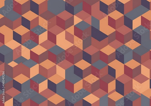 Abstract Geometric Cube Pattern, Earthy Tones