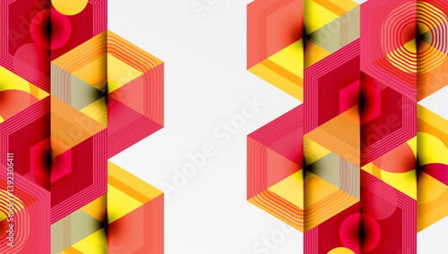 Abstract geometric design. Red, orange, yellow lines create complex shapes. White background provides contrast. Modern, vibrant, dynamic composition.