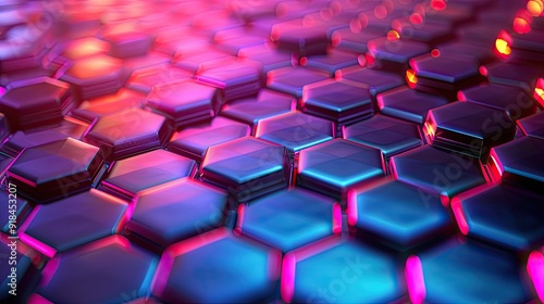 Abstract Geometric Hexagon Pattern with Neon Lights
