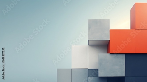 Abstract Geometric Minimalist Urban Layout with Structured Blocks and Solid Color Background