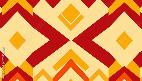 Abstract Geometric Pattern in Red Yellow and Beige