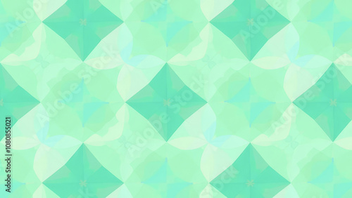 Abstract geometric pattern in shades of pastel green with overlapping circles, triangles and squares creating a sophisticated and stylish look.