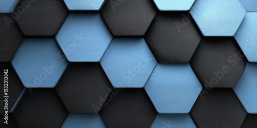 Abstract Geometric Pattern of Black and Blue Wooden Hexagons, Stylish Background Decorative Tiles