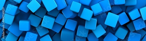 Abstract geometric pattern of overlapping blue cubes.