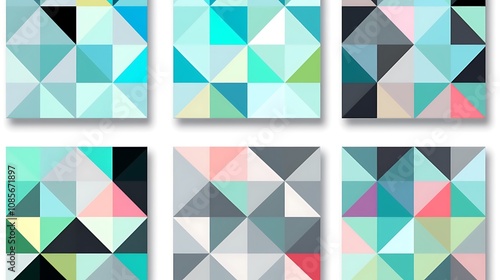 Abstract Geometric Pattern Six Colorful Triangle Designs