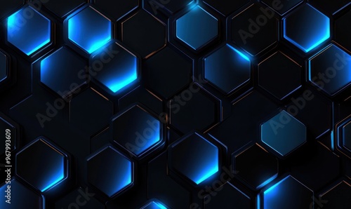 Abstract Geometric Pattern with Blue Glowing Hexagons
