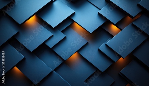 Abstract Geometric Pattern With Dark Blue Squares And Warm Orange Light