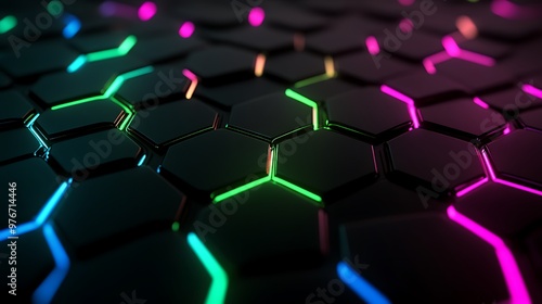 Abstract Geometric Pattern with Neon Lights on a Dark Background