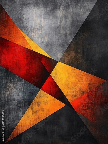 Abstract geometric pattern with red orange and yellow triangles on a dark gray background