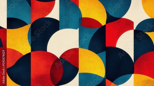 Abstract Geometric Pattern with Red, Yellow, Blue and White Circles