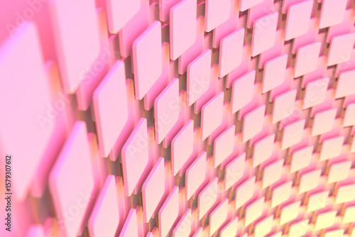 Abstract geometric pattern with repeating pink tiles and light glow. 3d render