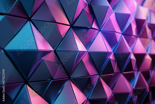 Abstract geometric pattern with triangular shapes and illuminated with neon lighting