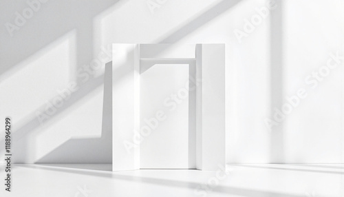 Abstract geometric shapes casting shadows on white background, minimalism
