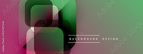 Abstract geometric shapes overlap, creating vibrant color gradients. Modern design elements suggest dynamic visual experience.
