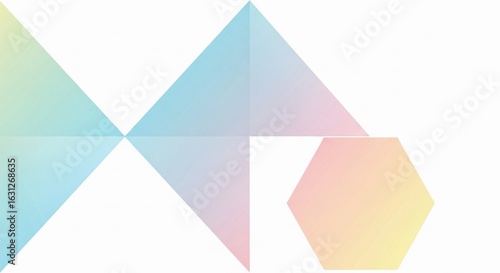 Abstract geometric shapes with pastel gradient colors on a white background, modern design elements.