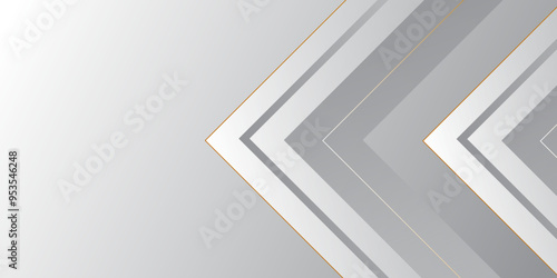 Abstract geometric white and gray arrow shine layer elements design background. Light gray and golden stoke triangle abstract subtle vector background for Business and Tech Concepts, cover, banner.